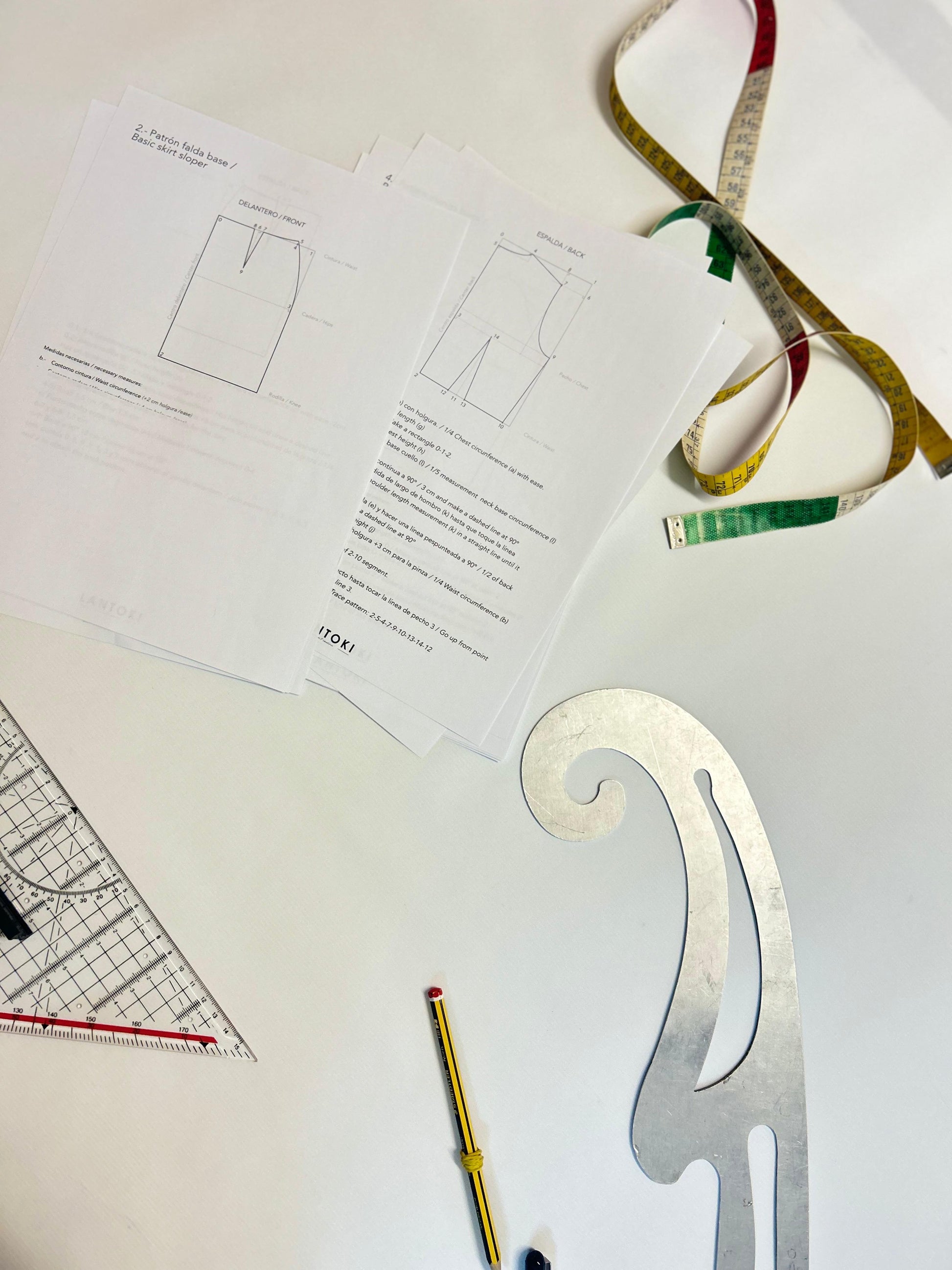Incluimos apuntes, reglas, escuadras y herramientas esenciales de patronaje.
